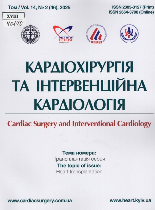 Кардіохірургія та інтервенційна кардіологія = Cardias surgery and interventional cardiology : укр. наук.- практич. журн. / Засновник Всеукр. асоц. фахівців з аритмології та електрофізіології серця ; гол. ред. Б. М. Тодуров. – Київ : Четверта хвиля, 2025. – Т. 14, № 2 (46). – 73 с.