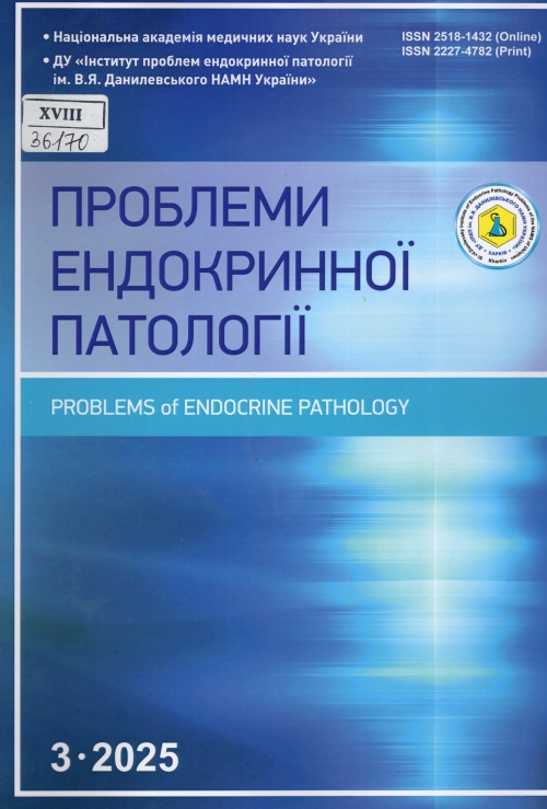 Проблеми ендокринної патології : щокварт. наук.-практич. журн. / Засновник АМН України. Ін-т проблем ендокринної патології ім. В. Я. Данилевського ; гол. ред. Ю. І. Караченцев. – Харків : Ін-т проблем ендокринної патології ім. В. Я. Данилевського, 2025. – № 3 (82). – 77 с.