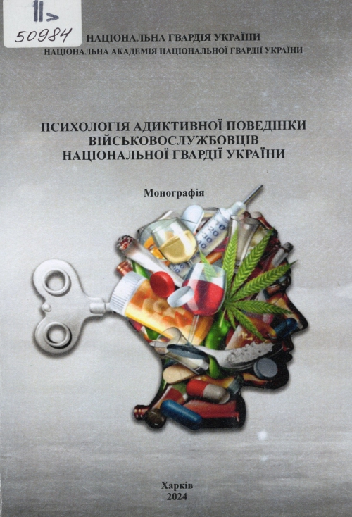 Психологія адиктивної поведінки військовослужбовців Національної гвардії України : монографія / Максим Степанович Байда, Ігор Іванович Приходько, Олександр Сергійович Колесніченко, Я. В. Мацегора, С. А. Горелишев ; Нац. гвардія України, Нац. акад. Нац. гвардії України. – Харків : НА НГУ, 2024. – 169 с. : рис., табл.
