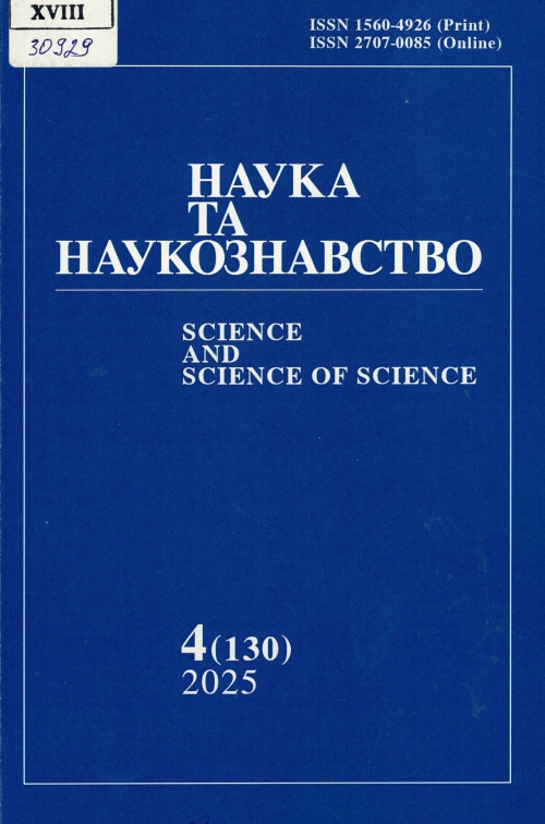 Наука та наукознавство = Наука и науковедение = ScienceandScienceofScience : міжнар. наук. журн. / Засновник НАН України, Ін-т досліджень науково-технічного потенціалу та історії науки ім. Г. М. Доброва ; гол. ред. Б. А. Маліцький. – Київ : Академперіодика, 2025. – № 4 (130). – 174 с.