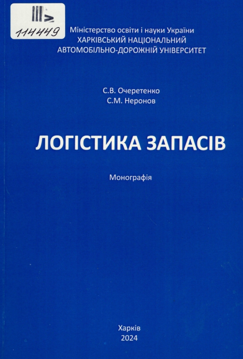 Очеретенко С. В. Логістика запасів : монографія / Сергій Валентинович Очеретенко, Сергій Миколайович Неронов ; Харків. нац. автомоб.-дорож. ун-т. – Харків : Бровін О. В., 2024. – 144 с. : рис., табл.
