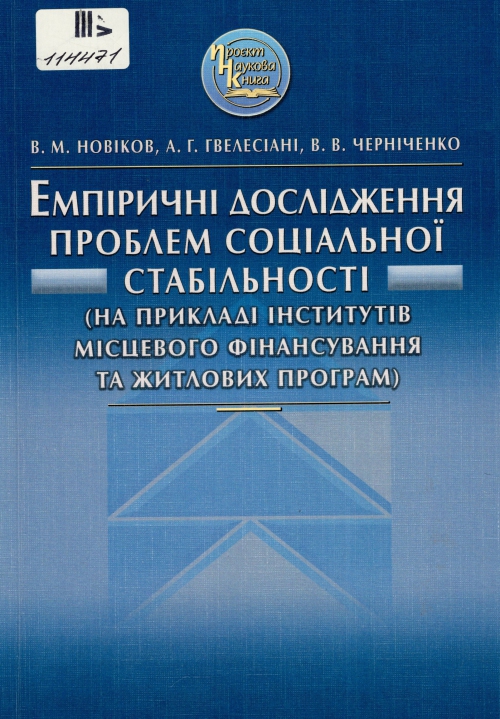 Новіков В. М. Емпіричні дослідження проблем соціальної стабільності (на прикладі інститутів місцевого фінансування та житлових програм) : [монографія] / Валерій Миколайович Новіков, Анна Гелаївна Гвелесіані, Віктор Васильович Черніченко ; НАН України. Ін-т демографії та проблем якості життя ; за ред. Валерій Миколайович Новіков. – Київ : Наукова думка, 2024. – 143, [2] с. : рис., табл. – (Проєкт "Наукова книга").