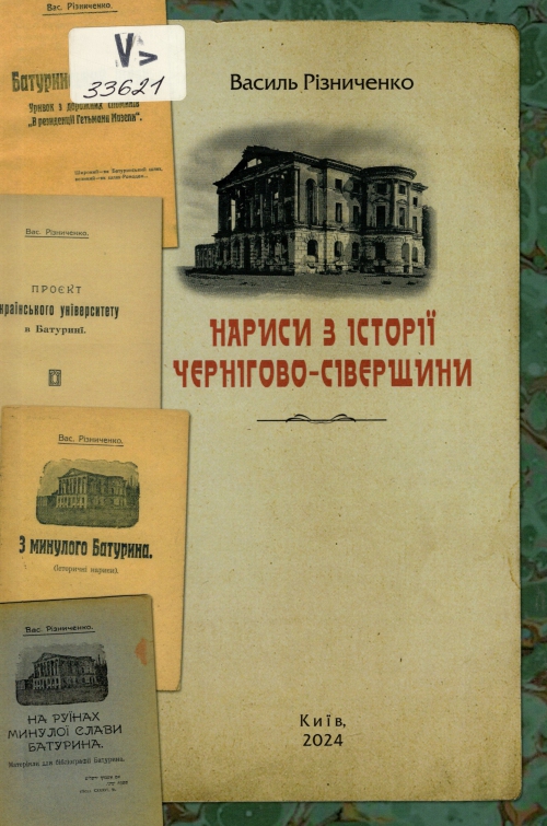 Різниченко В. Ф. Нариси з історії Чернігово-Сіверщини / Василь Федорович Різниченко ; М-во культури та інформ. політики України, Нац. іст.-культ. заповідник "Гетьманська столиця", Благодійний фонд "Спадок Гетьманщини" ; упоряд. Л. Г. Кіяшко, З. М. Сніжок, І. Ю. Паламарюк ; вступ. ст. Сергій І. Білоконь. – Київ : Вид-во "КЛІО", 2024. – 575 с., [8] арк. вкл. іл. : іл., фот., табл.