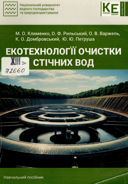 Екотехнології очистки стічних вод : навч. посіб. / Микола Олександрович Клименко, Олександр Федорович Рильський, Ольга Валентинівна Варжель, Костянтин Олегович Домбровський, Юлія Юріївна Петруша ; Нац. ун-т водного госп-ва та природокористування. – Рівне : НУВГП, 2024. – 228 с. : рис., табл.