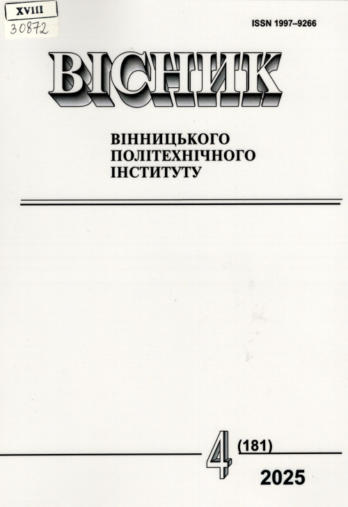 Вісник Вінницького політехнічного інституту : наук. журн. / Засновник Вінниц. нац. техн. ун-т ; гол. ред. Б. І. Мокін. – Вінниця : ВНТУ, 2025. – № 4 (181). – 213 с.