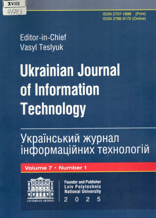 Ukrainian Journal of Information Technology = Український журнал інформаційних технологій : наук. журн. / Publish. org. Lviv Polytechnic Nat. University ; Ed.-in-Ch. Ivan Tsmots. – Lviv : Lviv Polytech. Nat. Un-ty, 2019. – Vol. 1, n. 1