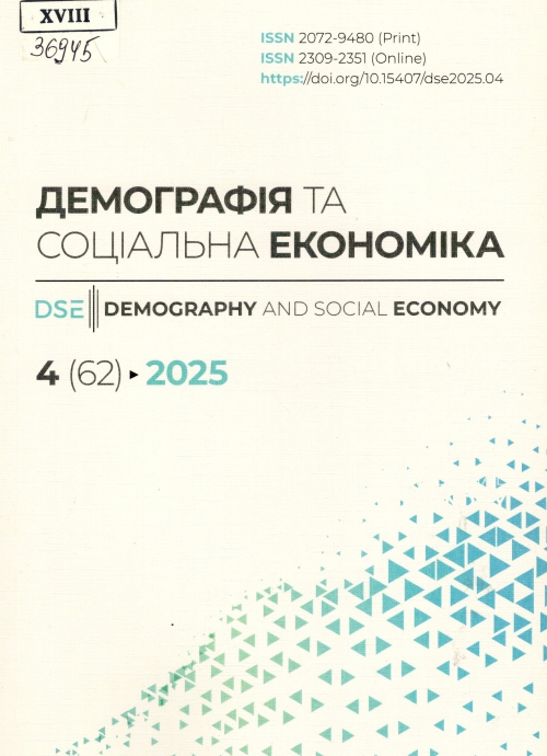 Демографія та соціальна економіка = Demography and Social Economy = Демография и социальная экономика : наук. журн. / Засновник НАН України. Ін-т демографії та соц. досліджень ім. М. В. Птухи ; гол. редкол. Е. М. Лібанова. – Київ : ІДСД, 2025. – № 4 (62). – 150 с.