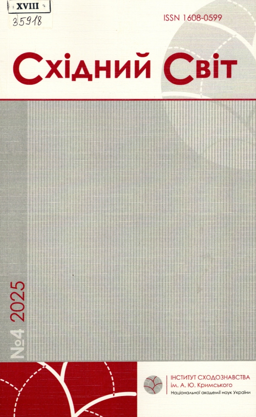 Східний світ = The world of the orient : журнал / Засновник НАН України. Ін-т сходознавства ім. А. Ю. Кримського ; гол. ред. І. В. Отрощенко. – Київ : Вид-во Ін-ту сходознавства НАН України, 2025. – № 4. – 262 с.