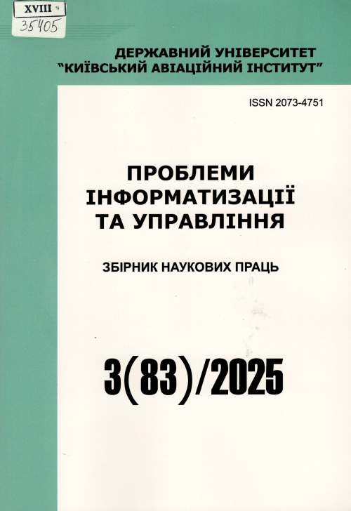 Проблеми інформатизації та управління : зб. наук. пр. / Засновник Нац. авіаційний ун-т (м. Київ, Україна), Нац. авіац. ун-т, Ф-т кібербезпеки, комп'ютерної та програм. Інженерії ; гол. ред. І. А. Жуков. – Київ : НАУ, 2025. – Вип. 3 (83). – 153 с.
