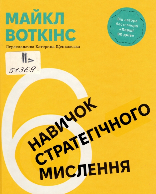 Воткінс Майкл. 6 навичок стратегічного мислення : як спрямувати свою організацію в майбутнє : пер. с англ. / Майкл Воткінс ; пер. Катерина Щепковська. – Київ : Наш Формат, 2025. – 154, [1] с. : рис. – Шість навичок стратегічного мислення.