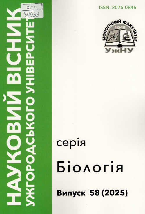 Науковий вісник Ужгородського університету. Серія: Біологія : наук.-практ. видання / Засновник Ужгород. нац. ун-т ; гол. ред. Т. Х. Олексик. – Ужгород : УжНУ, Ужгород; Одеса : Гельветика, 2025. – Вип. 58. – 192 с.