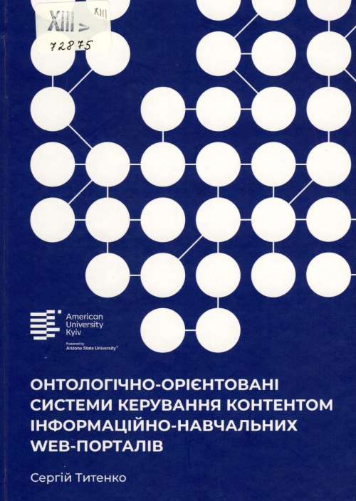 Титенко С. В. Онтологічно-орієнтовані системи керування контентом інформаційно-навчальних Web-порталів : монографія / Сергій Володимирович Титенко. – Київ : Амерікан Юніверсіті Київ, 2024. – 247 с. : схеми, табл., портр.