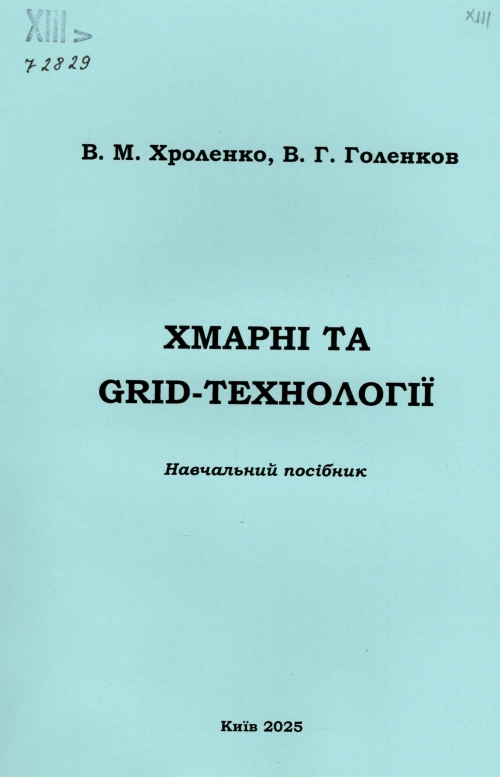 Хроленко В. М. Хмарні та GRID-технології : навч. посіб. для здобув. першого (бакалавр.) рівня вищої освіти галузі знань 12 "Інформаційні технології" спец. 122 "Комп'ютерні науки" / Володимир Миколайович Хроленко, Володимир Геннадійович Голенков ; Київ. нац. ун-т буд-ва і архітектури. – Київ : КНУБА, 2025. – 98 с. : іл., табл.