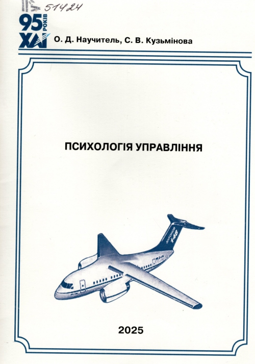 Научитель О. Д. Психологія управління : навч.-практ. посіб. / Олена Давидівна Научитель, Світлана Володимирівна Кузьмінова ; Нац. аерокосм. ун-т ім. М. Є. Жуковського "Харківський авіаційний інститут". – Харків : Нац. аерокосм. ун-т ім. М. Є. Жуковського "Харк. авіац. ін-т", 2025. – 63 с. : табл.