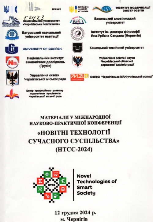 Новітні технології сучасного суспільства (НТСС-2024) : V Міжнар. наук.-практ. конф., м. Чернігів, 12 грудня 2024 р. : тези доп. / ДНУ "Ін-т модернізації змісту освіти", Нац. ун-т "Чернігівська політехніка", Бакин. слов'ян. ун-т ; гол. оргком. Олег Новомлинець ; оргком. Володимир Базилевич, Вячеслав Безручко, Ірина Білоус. – Чернігів : НУ "Чернігівська політехніка", 2025. – 344 с. : рис., табл.