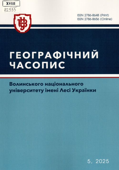 Географічний часопис Волинського національного університету імені Лесі Українки : наук. журн. / Засновник Волин. нац. ун-т ім. Лесі Українки ; гол. ред. Леонід Володимирович Ільїн. – Луцьк : ВНУ ім. Лесі Українки, Одеса : Гельветика, 2025. – Вип. 5 .