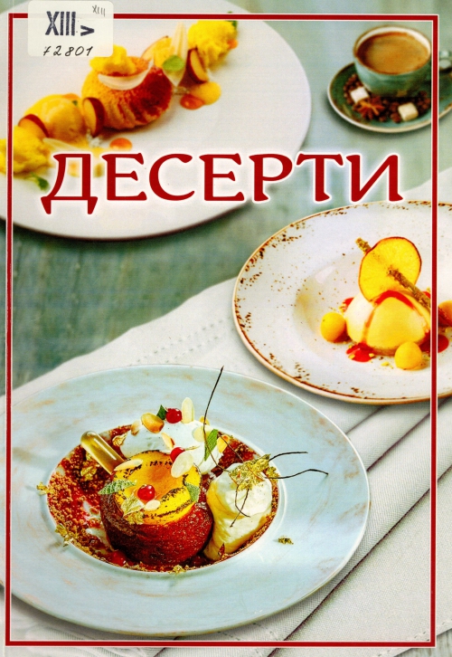 Десерти : навч. посіб. / Анатолій Антонович Мазаракі, Михайло Федорович Кравченко, Мирослава Павлівна Перепелиця, Вікторія Альбертівна Гніцевич, Тетяна Іллівна Юдіна ; Держ. торг.-екон. ун-т ; за ред. Анатолій Антонович Мазаракі. – Київ : Держ. торг.-екон. ун-т, 2024. – 347 с. : фотоіл. – (Технологія продукції ресторанного господарства).