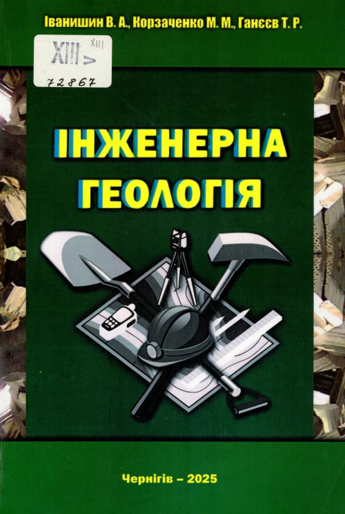 Іванишин В. А. Інженерна геологія : навч. посіб. / Володимир Андрійович Іванишин, Микола Миколайович Корзаченко, Тімур Рашитович Ганєєв ; Нац. ун-т "Чернігівська політехніка". – Чернігів : НУ "Чернігівська політехніка", 2025. – 251 с. : іл., фотоіл., портр., табл.