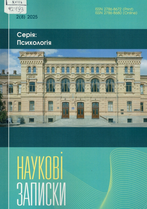 Наукові записки [Центральноукраїнського державного університету імені Володимира Винниченка]. Серія: Психологія : зб. наук. пр. / Засновник Центральноукр. держ. ун-т ім. В. Винниченка ; гол. ред. Тетяна Євгеніївна Гура. – Кропивницький : Гельветика. ; Одеса : Гельветика, 2025. – Вип. 2 (8). – 190 с.