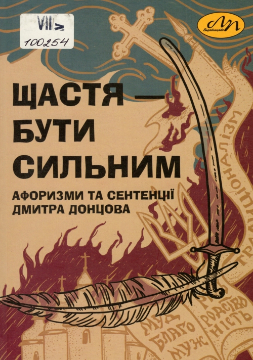 Донцов Д. Щастя - бути сильним : афоризми та сентенції Дмитра Донцова / Дмитро Донцов ; Нац. ун-т "Львівська політехніка" ; автор ідеї Оксана Микитюк ; уклад. Оксана Микитюк ; наук. конс. Ірина Фаріон ; передм. Олег Баган. – 3-тє вид. – Львів : Вид-во Львівської політехніки, 2024. – 388 с. : іл.
